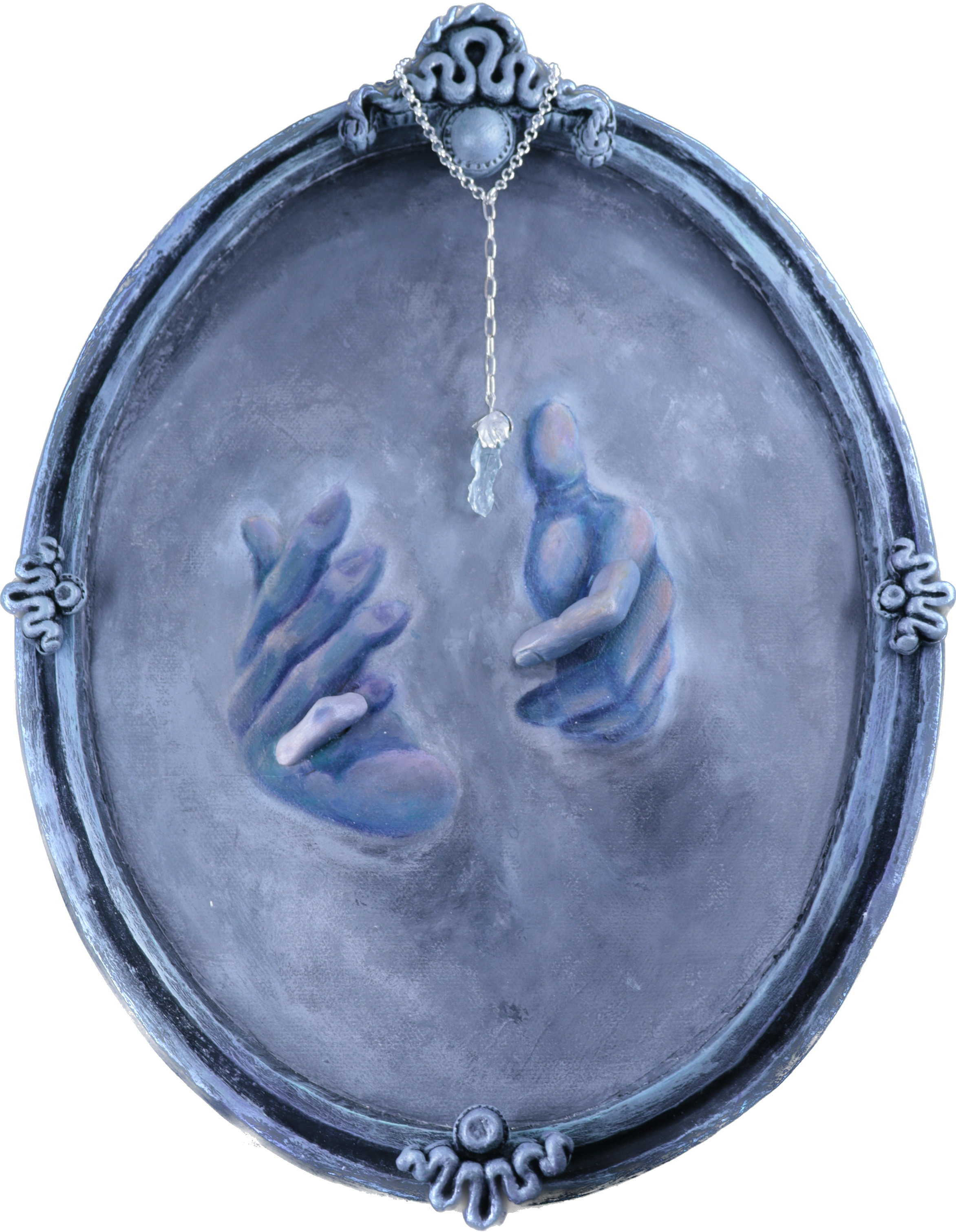 キャンバス、アクリル絵の具、シルバー950、シーグラス、アルキド絵の具、石粉粘土