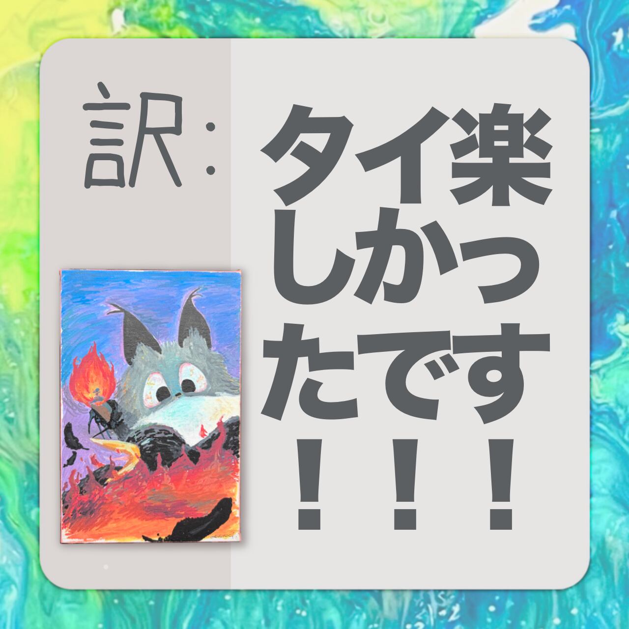 側面のタイ語は「私はぴゃいやぁあんを中火で炙り焼く」と書いてあります。